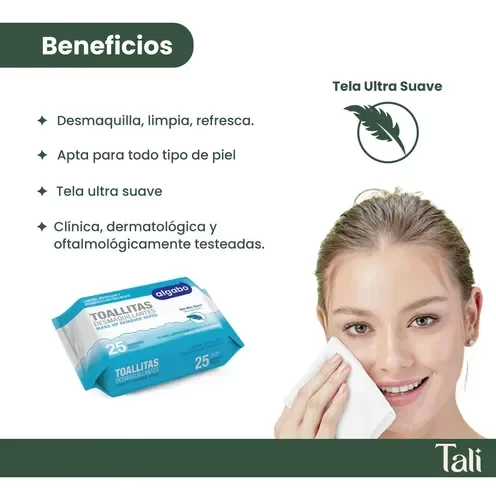 Contiene 25 unidades de toallitas desmaquillantes para todo tipo de piel.
